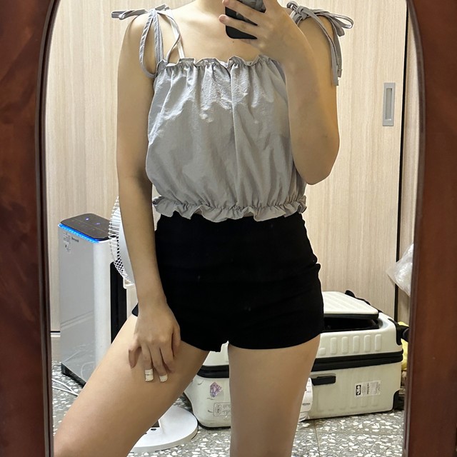 抓皺式設計對小胸有好,肩帶可以自己綁所以長度都可以自行調整~