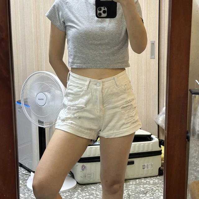 微高腰設計,難得有好穿的白色牛仔短褲!