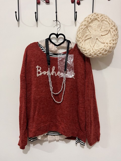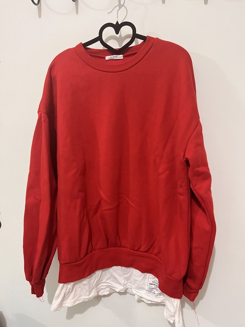 韓製刷破紅色寬鬆上衣