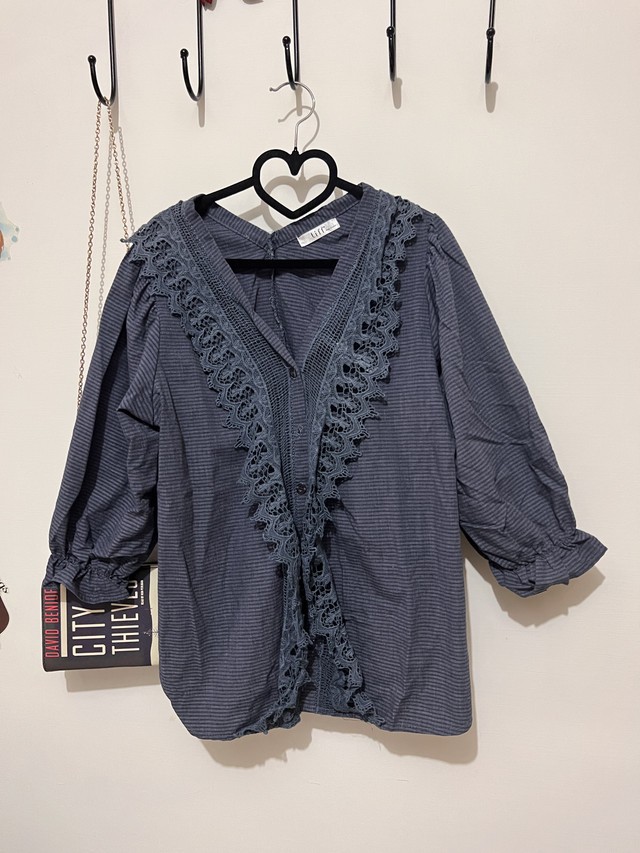 日系風格蕾絲v領襯衫