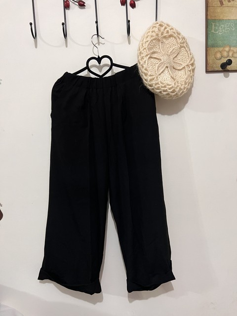 黑色鬆緊寬褲